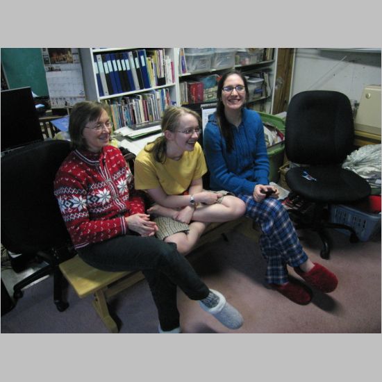| For the past seven years we have celebrated New Year's Eve with the Wilsons at their home. Sadly for us, the Wilsons moved to New Mexico this year around August. We chose to stay home and celebrate with just four of us, Joyce, Rachel, Julia, and John. However, to keep some of the tradition going, we had a video chat with the Wilsons using Skype. The chat started at about 10:00 PM EST and went until after midnight EST time, welcoming in the new year in New Hampshire. New Mexico is 2 hours later. Below are a few pictures taken during the chat. |