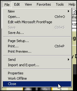- On the Web browser menu bar, select Close from the File menu.