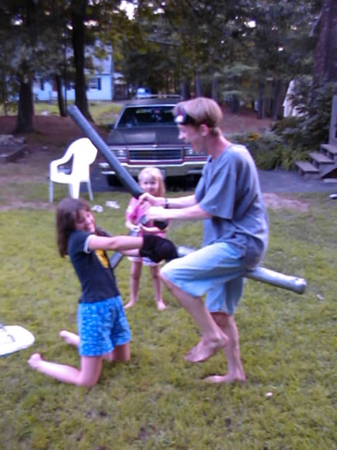 Heather's BYU roommate and her family (from NY) came to visit us. We all made our way to North Hampton Beach in NH for a day in the surf and sun. Later we had dinner outside and a few battles for entertainment.