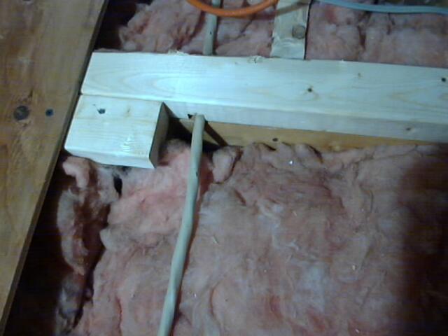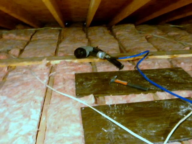 In March 2002 John started in on a home improvement project, creating a storage area in the attic. Since the house was built around 1965 there has never been any access to the attic. John cut a hole in the hallway ceiling and entered the unknown world. Below are pictures showing how the project unfolded. Work continued as time permitted until project completion on 13 July 2002. A total of 102 hours were expended in the project as follows: John 86, Brad 6, Stanford 6, Heather 1, Tony Eberhard 3.