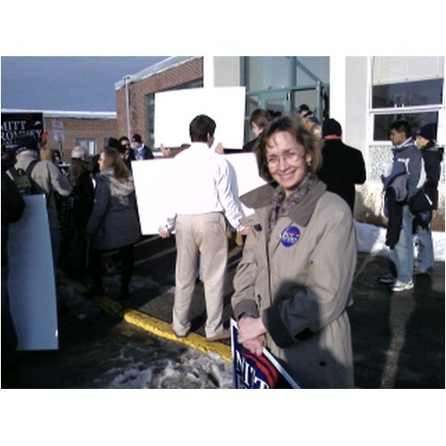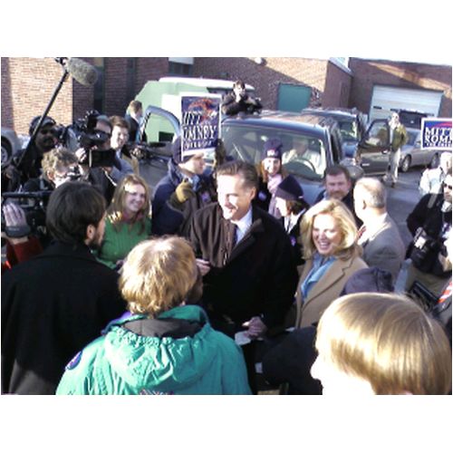 | Mitt Romney held a town meeting at Elm Street Middle School in Nashua, NH. Phillip and Andrew wanted to attend so John took them there. We got good seats. These cell phone pictures aren't the best, but it's the only camera we had at the time. The last picture is of Phillip just after shaking Mitt's hand. |
