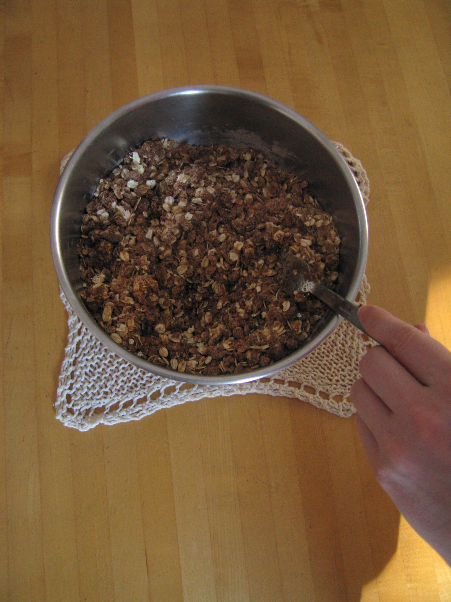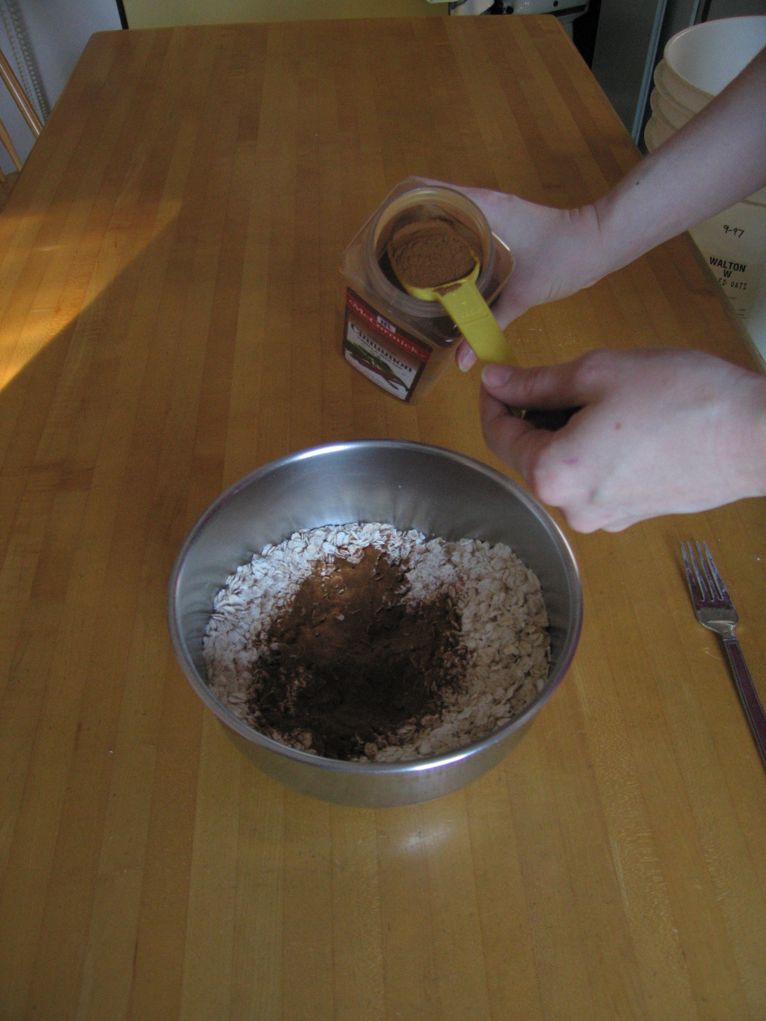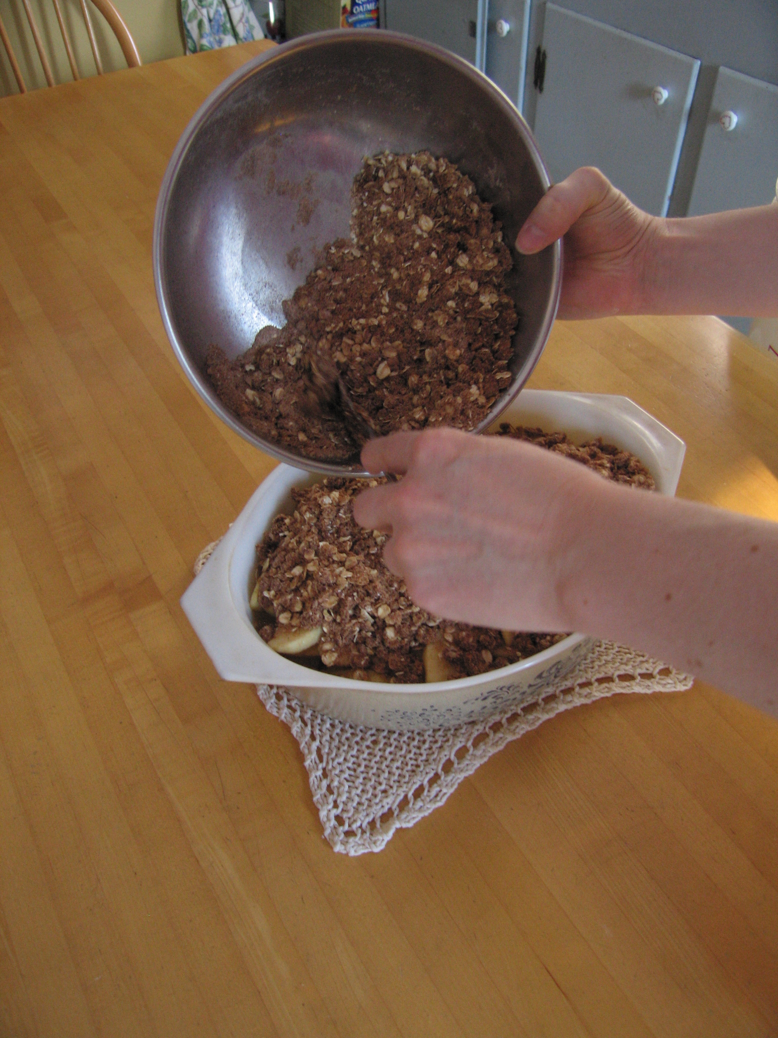 This is a continuation of pictures taken showing the steps to making the World's Best Apple Crisp. See BestAppleCrispInTheWorld.com for the complete website. Heather said she will put together a cool website.