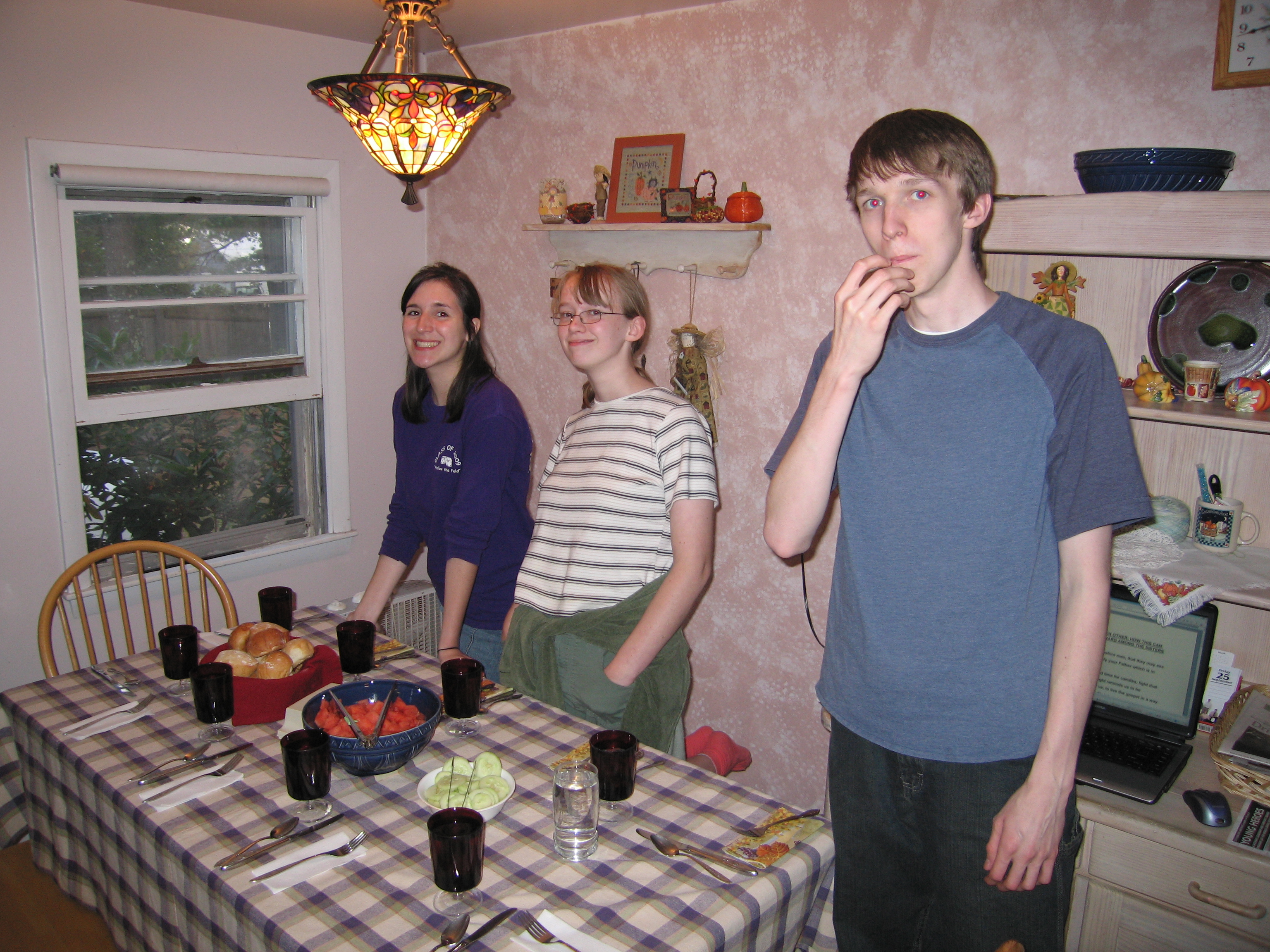 | Elders Payne and Walkey came to dinner. Elder Walkey is assigned to the Littleton Ward, but the zone leaders were doing training so Elder Walkey spent the day in Nashua. Earlier in the day all four Elders in Nashua helped moving Heather's friend Joanna from her apartment into a condo. That was an awesome service opportunity and Joanna was blown away by the help rendered. |