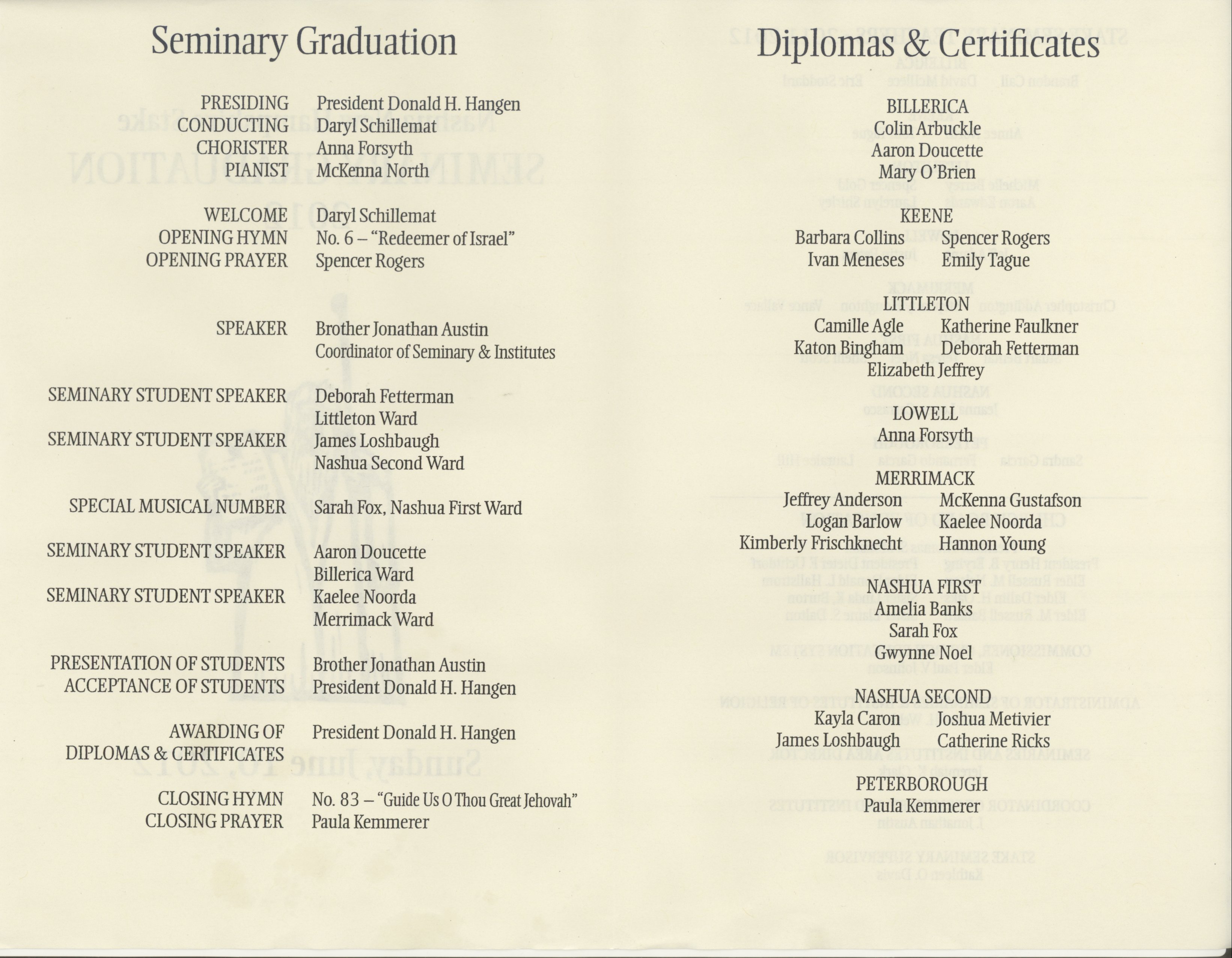 2012 06 10 - Seminary Graduation