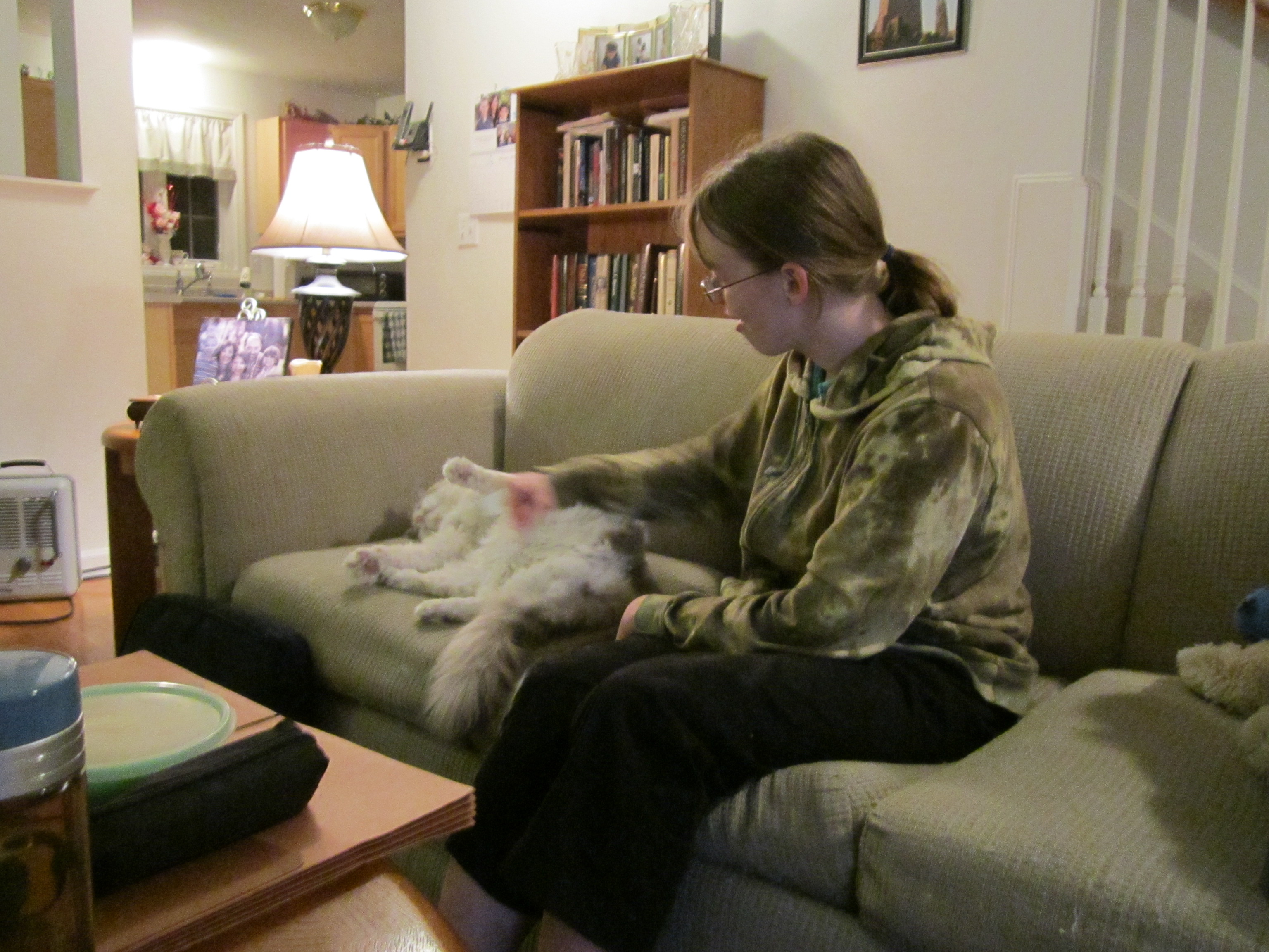 2013 02 19 - Julia taking care of Potters' cats