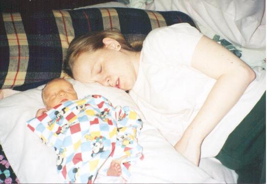 StayC napping with her new baby boy Kyle, born 21 March 1999