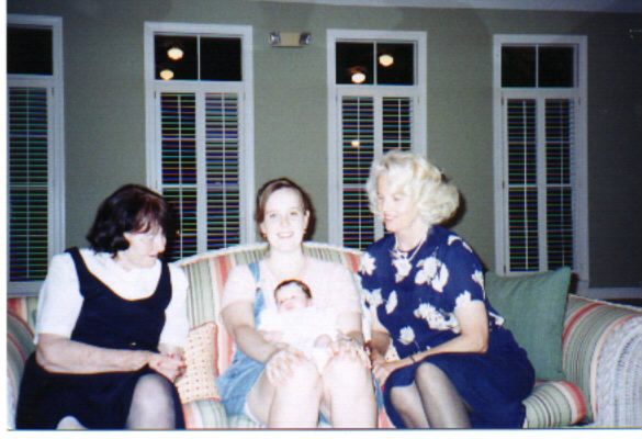 Four generations. Left to right: Grandmother Mootie, Squeeky holding Madison, and Squeeky's mother